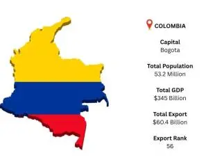 Comprehensive information on Colombia export data , including export volumes, main exported commodities like petroleum and coffee, and primary international markets, offering a clear picture of outbound market movements.