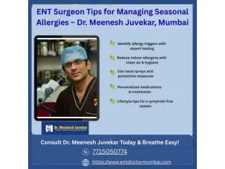 Suffering from seasonal allergies? Consult Dr. Meenesh Juvekar, ENT Surgeon in Mumbai, for expert care. Get personalized treatments, medications, nasal sprays, and lifestyle tips to manage sneezing, congestion, itchy eyes, and other allergy symptoms. Book your appointment today and breathe easy this season.