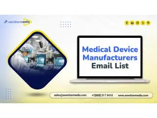 Reach high‑value prospects worldwide. Avention Media provides a uniquely structured and fully verified Medical Device Manufacturers Email List to support data‑driven marketing decisions. Use this dataset to connect with decision‑makers across major regions including the USA, UK, Canada, Germany, Australia, and more. Perfect for businesses aiming to increase ROI through accurate, responsive, ready‑to‑use contact intelligence.