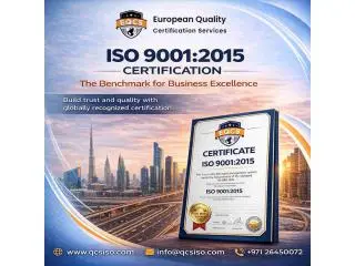 European Quality Certification Services offers ISO 9001:2015 certification in Dubai with reliable and globally recognized standards for quality management systems. We deliver certification services that align with international compliance and industry requirements. Our process ensures organizations meet quality benchmarks with accuracy and credibility. We focus on issuing certifications that enhance business trust and operational excellence. Our certification adds value by improving brand reputation and customer confidence. We maintain strict assessment procedures to ensure authenticity and compliance. Our services are suitable for businesses of all sizes across various industries. Get in touch with European Quality Certification Services today to get your ISO certification and elevate your business standards.