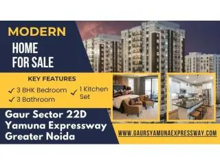 Welcome to the Gaur Sector 22D Yamuna Expressway is located in Greater Noida. We are providing stunning 3 and 4BHK homes with luxurious style and all comforts. The project features open surroundings, greenery, and high-quality road connections. It's the ideal family community for homebuyers and investors those looking for luxury and a peaceful lifestyle in one of the fastest-growing cities of Uttar Pradesh.