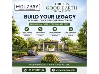 Houzbay Real Estate Consultants presents Fortius Good Earth, premium villa plots in North Bangalore designed for modern living and smart investment. This thoughtfully planned plotted development offers spacious layouts, wide internal roads, and lush green surroundings, creating a perfect environment for families. Strategically located near key growth corridors, it ensures excellent connectivity to major hubs, schools, and upcoming infrastructure developments. With rising demand in North Bangalore, this project promises strong appreciation potential. Backed by Houzbay’s expert guidance and verified property solutions, buyers can enjoy a transparent and hassle-free process while securing a future-ready investment in a rapidly developing location.