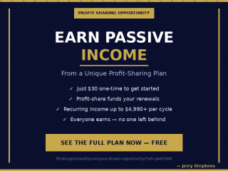 Start with just $30 one-time. Our profit-sharing plan funds your renewals so you never pay out-of-pocket again.