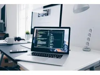 Boost your online presence today with Axiom Web Tech. A modern workspace showcasing Web Development in action at Axiom Web Tech, featuring developers coding on sleek laptops, UI/UX designs on screens, and collaborative brainstorming. The scene highlights innovation, responsive design, and cutting-edge technology driving digital solutions for businesses. Visit us for more!