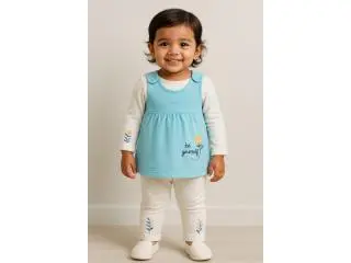Let her shine in her own way.This blue dress set with floral details blends comfort, warmth, and confidence — perfect for cozy winter playdays.