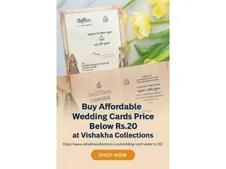 Shop for elegant and affordable wedding cards priced under Rs. 20 Made with high-quality paper, these cards are not only affordable but also long-lasting and ageless, making them the best choice for price-sensitive couples who want no compromise on sophistication. Visit https://www.vishakhacollections.com/wedding-card-under-rs-20/ Now! Order your budget-friendly wedding invitations today and make your special day extra special. Call or Whatsapp at 7838867525 / 9999006081 #AffordableWeddingCards #WeddingCardsBelow20 #WeddingCardsPrice #WeddingCardsUnder20