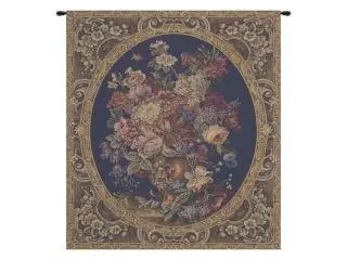 Floral Composition in Vase Dark Blue Italian Tapestry Wall Hanging Ferndale