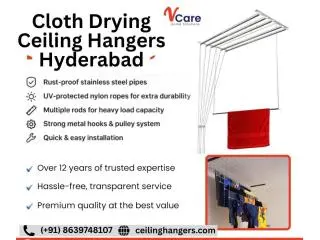Upgrade your home with premium cloth drying ceiling hangers Hyderabad in Telangana designed for balconies and utility areas. These durable, rust-resistant hangers offer excellent load capacity, faster drying, and organized laundry spaces. Ideal for apartments and villas, ceiling hangers help save floor space while maintaining a clean, modern look for everyday cloth drying needs.