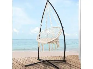 Gardeon Macrame Hammock Chair with Steel Stand – Cream, 120kg Capacity