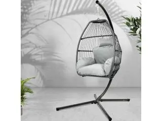 Gardeon Outdoor Egg Swing Chair – Wicker Rope Pod with Grey Cushion