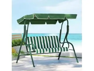 Gardeon Outdoor Swing Chair Garden Bench Furniture Canopy 3-Seater White/Green