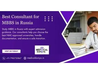 Best Consultant for MBBS in Russia with expert admission guidance. Our MBBS consultants help you choose the best NMC-approved universities, handle documentation, and ensure a safe transition. Get affordable education and global exposure with complete admission support for MBBS in Russia.