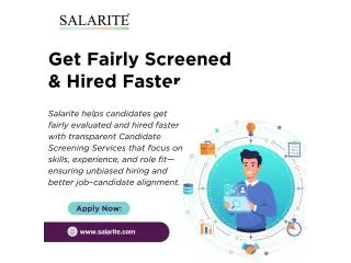 Salarite delivers reliable Candidate Screening Services designed to create a fair, efficient, and faster hiring experience for both employers and job seekers. By using structured evaluations, skill-based assessments, and technology-driven screening methods, Salarite ensures candidates are assessed objectively based on merit rather than bias. This approach improves hiring accuracy, reduces unnecessary rejections, and shortens recruitment timelines. Employers benefit from high-quality shortlists, while candidates gain access to roles that truly match their skills and experience. Whether hiring for startups, IT roles, or growing teams, Salarite’s screening framework promotes transparency, efficiency, and confidence—helping the right talent get hired faster and more fairly.