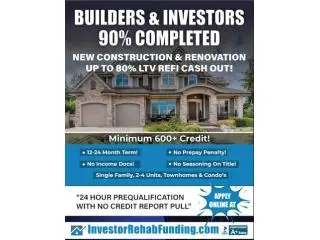 BUILDERS and FIX & FLIP INVESTORS–CASHOUT REFI ON 90% COMPLETED HOMES! New York City