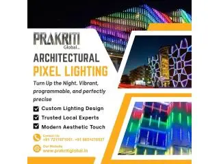 Transform building facades and outdoor spaces with Prakriti Global Architectural Pixel Lighting in Delhi NCR, designed to create stunning visual effects and modern architectural appeal. Our advanced pixel lighting solutions bring dynamic illumination to commercial buildings, hotels, malls, bridges, and residential projects, enhancing their appearance with vibrant colors and programmable lighting patterns.