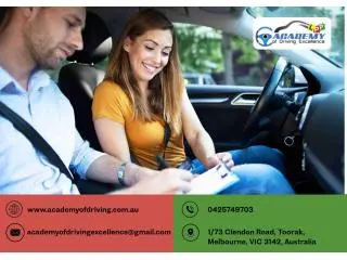 Driving School Melbourne – Learn Safe, Pay LessServices - Melbourne (Melbourne) - February 11, 2026Choose a trusted driving school in Melbourne learners recommend. Academy Of Driving Excellence provides professional and affordable driving lessons in Melbourne designed to suit students of all experience levels. Our patient instructors create a supp...