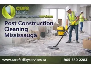 Care Facility Services offers professional post construction cleaning Mississauga to transform newly built or renovated spaces into spotless, move-in ready environments. Our trained team removes dust, debris, and construction residue with precision, using advanced equipment and safe cleaning products. Our reliable post construction cleaning Mississauga services are tailored for commercial properties of all sizes. We focus on detail, efficiency, and timely completion, ensuring your space looks polished and ready for use. Trust us for thorough cleaning that enhances the final presentation of your project.
