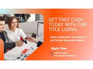Access fast cash today with car title loans Langley from Top Loans Canada! Experience a quick approval process, simple requirements, and flexible repayment plans that make borrowing convenient. Use your vehicle’s title to unlock secure, same-day funding while continuing to drive. Enjoy a clear and straightforward lending experience designed to support your financial goals. Apply now!