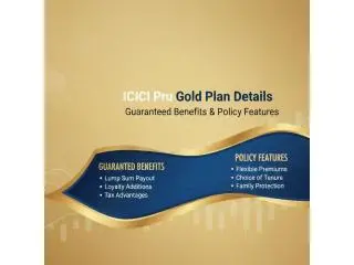 The ICICI Pru Gold Plan is a reliable gold insurance solution that provides secured benefits, life coverage, and financial security for the long term. As an ICICI Prudential Gold insurance plan holder, you can expect secured payouts of your maturity amount, flexible payment options for your premiums, and steady returns without any market risks. All these factors make ICICI Gold a reliable choice for steady growth.