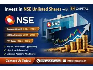 The financial highlights clearly indicate NSE’s robust business model and long-term growth potential. In 2024, the company maintained healthy profitability with strong EBITDA performance and stable PAT, reflecting operational efficiency and market dominance. By 2025, NSE further strengthened its position with improved earnings and sustained profitability, making NSE unlisted shares one of the most discussed pre-IPO opportunities in the market. SN Capital provides investors with trusted access to NSE unlisted shares and other premium opportunities in the unlisted market. If you are planning to diversify your portfolio with high-potential pre-IPO investments, contact SN Capital today to learn how to invest in NSE unlisted shares and explore exclusive opportunities in India’s growing unlisted share market.