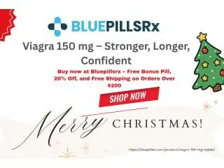Viagra 150 mg by Bluepillsrx is a high-strength Sildenafil tablet for ED. It boosts blood flow to help achieve firm, lasting erections. With discreet online ordering and affordable pricing, Bluepillsrx makes it easy to regain confidence and enjoy intimate moments.