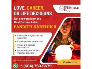 Pandith Karthik Ji is the best fortune teller in Vancouver, offering trusted spiritual guidance for love, career, family, and life decisions through proven intuitive practices. We provide clear fortune readings that help people understand ongoing challenges and future possibilities with confidence and calm. Our experience with spiritual guidance allows us to address relationship confusion, career blocks, financial worries, and emotional stress. We provide honest consultation, practical guidance, and respectful listening to all concerns. Our approach supports personal growth by helping individuals make better choices with clarity and peace of mind. Book a personal appointment with Pandith Karthik Ji today in order to experience genuine fortune guidance.