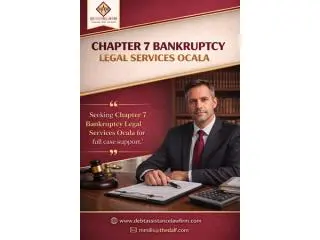 Chapter 7 Bankruptcy Legal Services Ocala provide comprehensive support for individuals overwhelmed by debt. These services include case evaluation, filing guidance, court representation, and creditor negotiations. Legal experts also advise on exemptions and asset protection to maximize your relief. Using professional services reduces stress and ensures compliance with all legal requirements. Debt Assistance Law Firm offers reliable legal support to make the bankruptcy process smooth and effective. With expert guidance, you can focus on rebuilding your financial life. Contact them today to access trusted Chapter 7 legal services in Ocala.