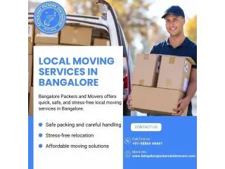 Bangalore Packers And Movers deliver dependable local moving services in Bangalore designed to make your move safe, fast, and cost-effective. We take care of every step, including professional packing, secure loading, and efficient transportation for both residential and commercial moves. Our experienced staff carefully manages furniture, electronics, and delicate belongings to make sure everything reaches your new location in perfect condition. We create personalized moving plans customized to your timeline and budget, providing flexibility and convenience. Our dedicated support team remains available to assist you throughout the relocation journey. Contact Bangalore Packers And Movers today for a seamless and worry-free moving experience.