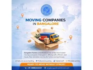 Bangalore Packers and Movers stands among the leading moving companies in Bangalore, delivering secure and seamless relocation services. We offer dependable home and office shifting with careful handling and expert packing support. Our skilled team ensures all belongings are packed safely using premium materials and moved with advanced tools. We prioritize on-time delivery and aim to exceed customer expectations at every step. Our solutions are customized to simplify your move and keep the entire process stress-free. We manage everything from packing to final setup with precision and care. Get in touch with Bangalore Packers and Movers today and plan your move with complete peace of mind.