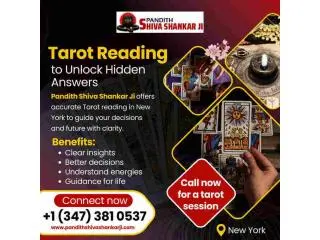 Pandith Shiva Shankar Ji provides accurate and helpful Tarot reading in New York to guide you through life’s uncertainties. We use our expert knowledge and experience to interpret the cards, helping you understand the present, foresee challenges, and make informed decisions. Our personalized Tarot sessions focus on love, careers, health, and relationships, providing clarity and direction for a balanced life. We ensure a supportive and confidential environment where our clients feel heard and confident. Our guidance helps you gain confidence and inner peace. Contact Pandith Shiva Shankar Ji today to experience transformative Tarot readings near you.