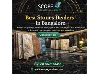 Scope Granites has been a best stone dealer in Bangalore for a long time, offering quality and durability that is second to none. Our granite, marble, and natural stone are suitable for both private and commercial settings. We pride ourselves on offering products that are strong, elegant and at a competitive price point. We strive to deliver high-quality products, expert craftsmanship and on-time delivery. We can help you pick the perfect stone for your interiors, exteriors, flooring and countertops. Make an appointment with Scope Granite today for the best deals and to transform your space into something spectacular.