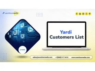 Boost your B2B targeting precision. Avention Media provides a uniquely structured and fully verified Yardi Customers List to support data‑driven marketing decisions. Use this dataset to connect with decision‑makers across major regions including the USA, UK, Canada, Germany, Australia, and more. Perfect for businesses aiming to increase ROI through accurate, responsive, ready‑to‑use contact intelligence.