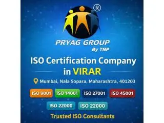 Looking for a reliable ISO certification company in Virar? Pryag Group provides professional ISO certification services for businesses of all sizes. We help you get certified for ISO 9001, ISO 14001, ISO 27001, ISO 45001, ISO 22000 and more with complete documentation, audit support, and fast approval process. Improve your business credibility, compliance, and customer trust with expert ISO consultants in Virar.