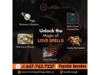 Psychic Gurudev provides effective and genuine love spell services in Scarborough, helping you attract true love, restore lost relationships, and heal emotional wounds. We use time-tested spiritual methods and customized rituals designed to bring peace, trust, and affection back to your love life. Our positive-energy rituals focus on enhancing emotional connection, removing negativity, and promoting lasting harmony. We are dedicated to offering guidance that resonates with your deepest desires. Whether you wish to reunite with your partner or find new love, our trusted spiritual solutions can help. Contact Psychic Gurudev today for powerful love spell services you can trust.