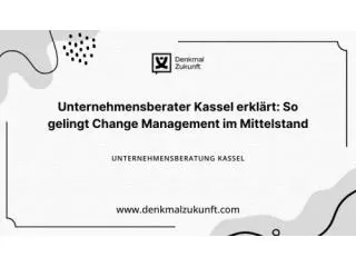 So unterstützt ein Unternehmensberater Kassel bei der UnternehmensnachfolgeServices - Berlin (Berlin) - November 19, 2025Erfahrener Unternehmensberater Kassel für Strategie, Führung & Transformation. Individuelle Lösungen für KMU & Industrie. Jetzt unverbindlich beraten lassen: +49 (0) 561 31701788. info@denkmalzukunft.com Mo:- +49 (0) 561 3...