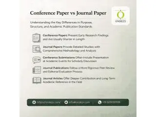 Understanding the difference between a conference paper vs journal paper helps researchers choose the appropriate platform for presenting their work. A conference paper is usually prepared for presentation at academic conferences and focuses on sharing new ideas or preliminary research findings within a limited word count. It allows researchers to receive feedback from experts and peers in their field. A journal paper, on the other hand, provides a more detailed and comprehensive study with extensive methodology, analysis, and discussion. Journal publications often undergo a more rigorous peer review process and require a deeper level of academic contribution. Both formats play an important role in scholarly communication, helping researchers share knowledge, build credibility, and contribute to the advancement of their discipline. https://ondezx.com/ | info@ondezx.com | +91 9791191199